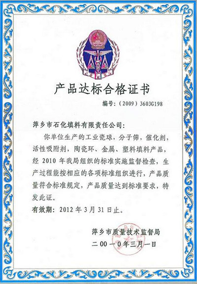 產(chǎn)品達標合格證書